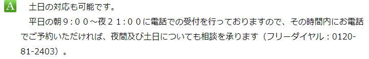 土日や夜間しか暇が無いのですが、その時間に対応してもらえますか?