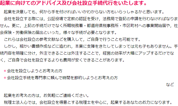 大変申し訳ございませんが,担当税理士の予定が一杯のため,現在, 起業サポートについてのご相談はお受けすることができません。